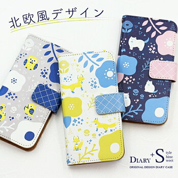 キツネ・ネコ・フクロウの北欧風デザインの 手帳型 ダイアリーケース。