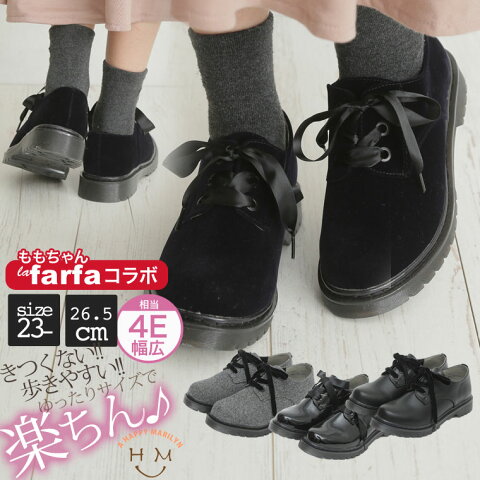ラファーファ lafarfa 【la farfa 3月号掲載】ラファモ ◆ももちゃんプロデュース◆ 大きいサイズ レディース オックスフォードシューズ 靴 | L LL 3L おじ靴 リボンシューレース フェイクレザー スニーカーフィール ふわふわ 3E