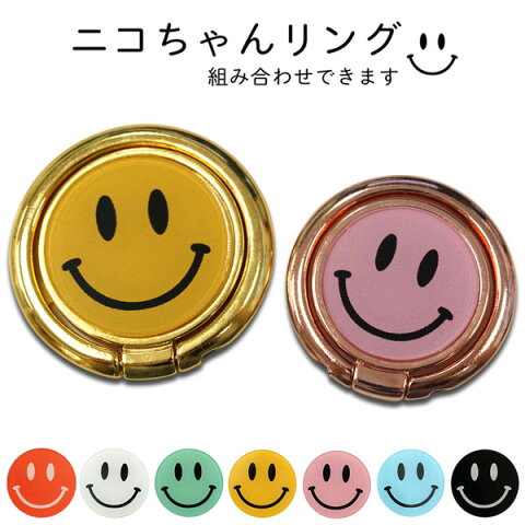 スマホリング Smile スマイル デザイン おしゃれ ニコちゃん マーク カワイイ スマートフォンリング スマホ リング バンカーリング iPhone XS iPhone SE 第2世代 11 Pro XR iPhone8 Xperia Galaxy AQUOS HUAWEI Android One